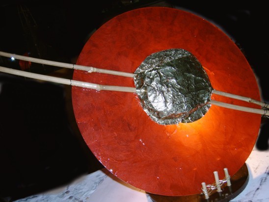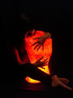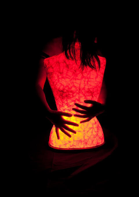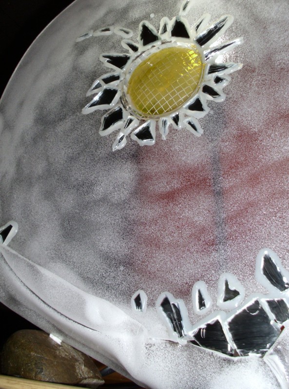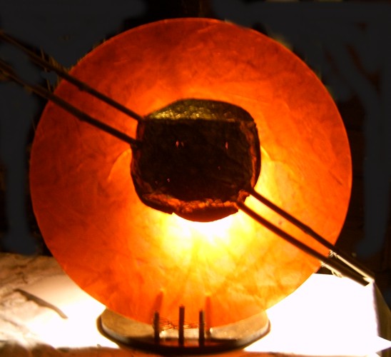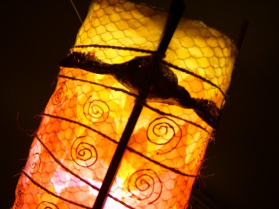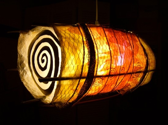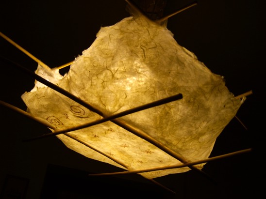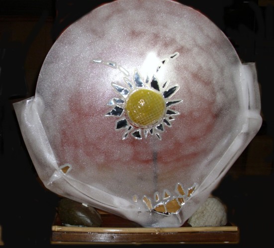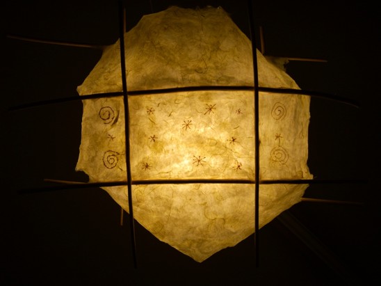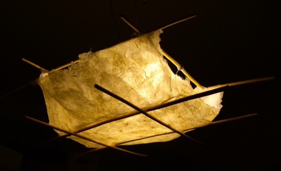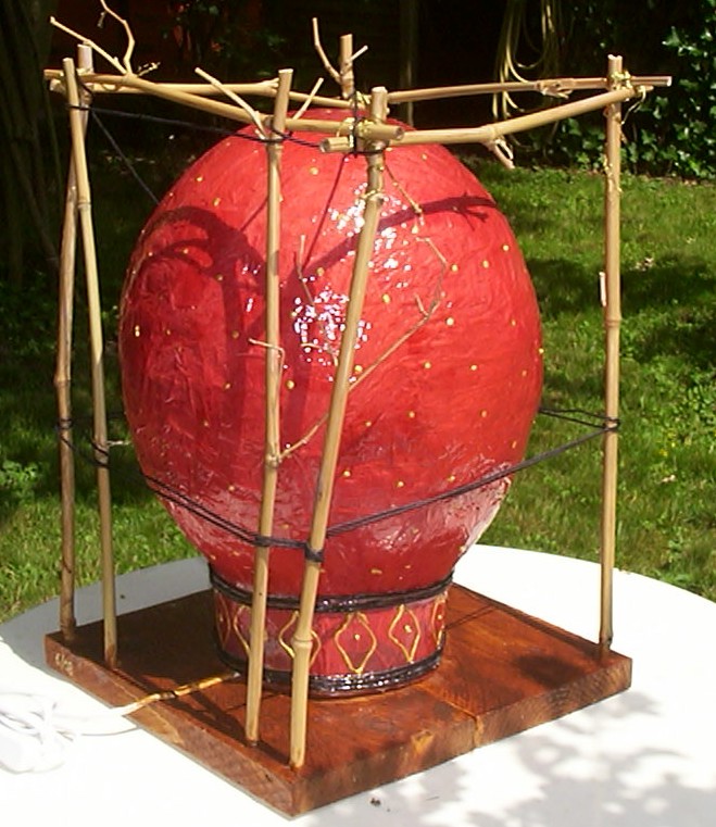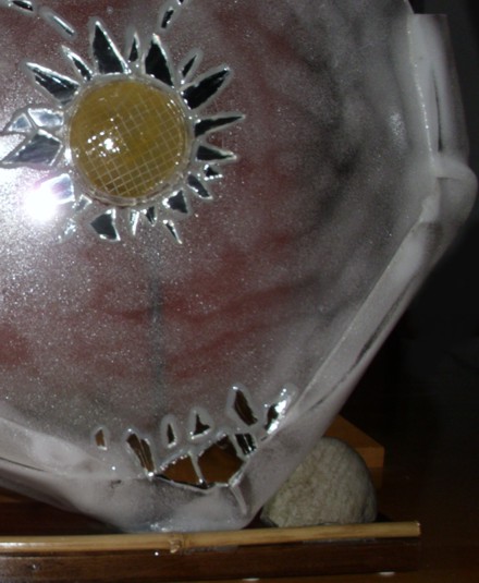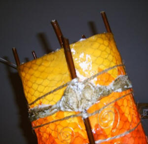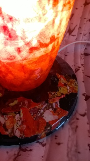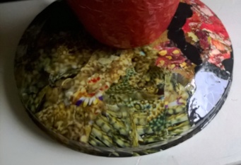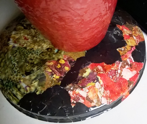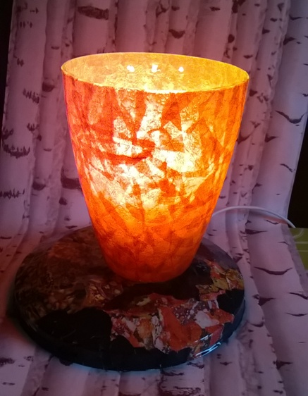 ![]() kleine Tischleuchte Glas mit Papier, Sockel Papiermosaik |
